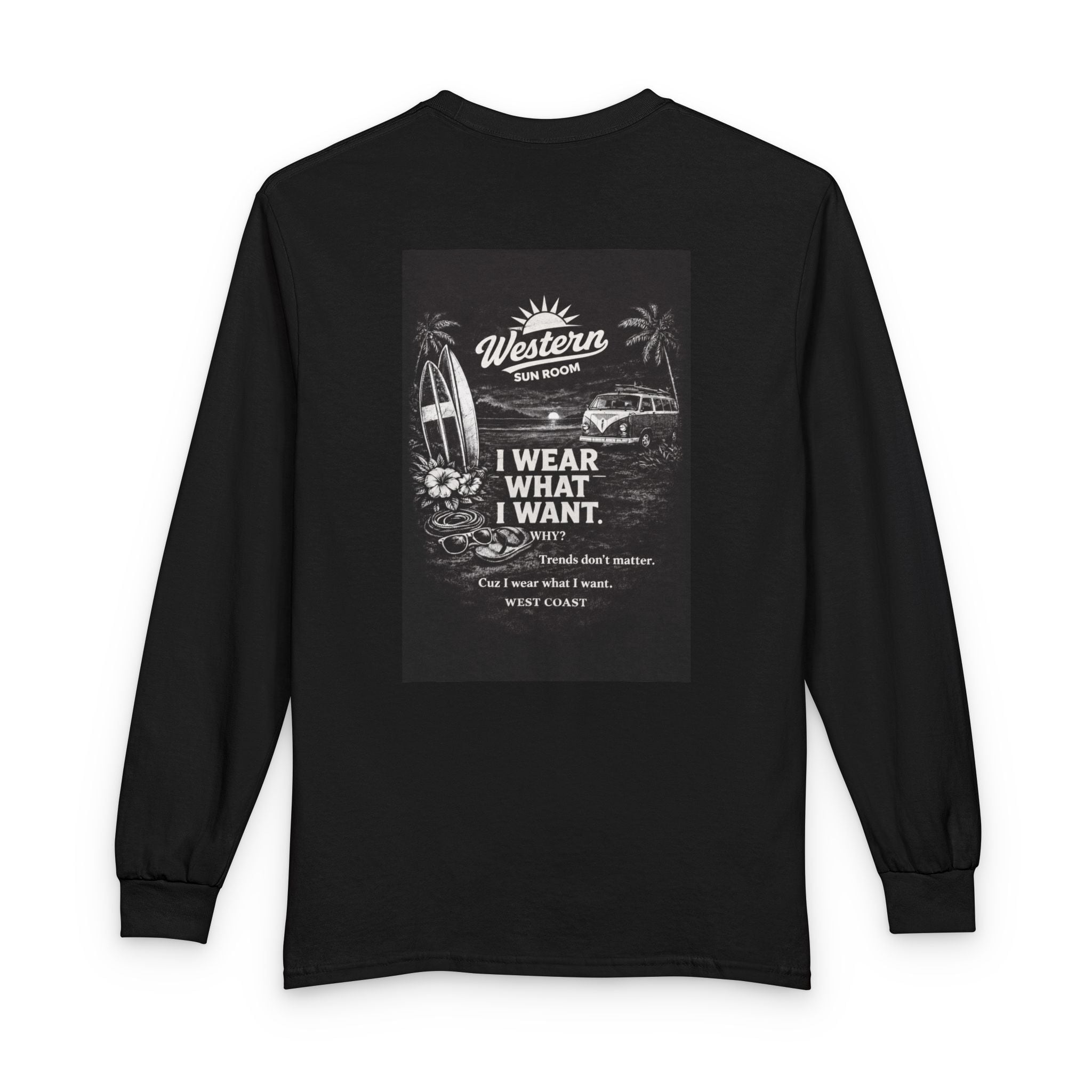 Western Sun Roomオリジナルグラフィックを背中に大胆にプリントしたロングスリーブTシャツ。