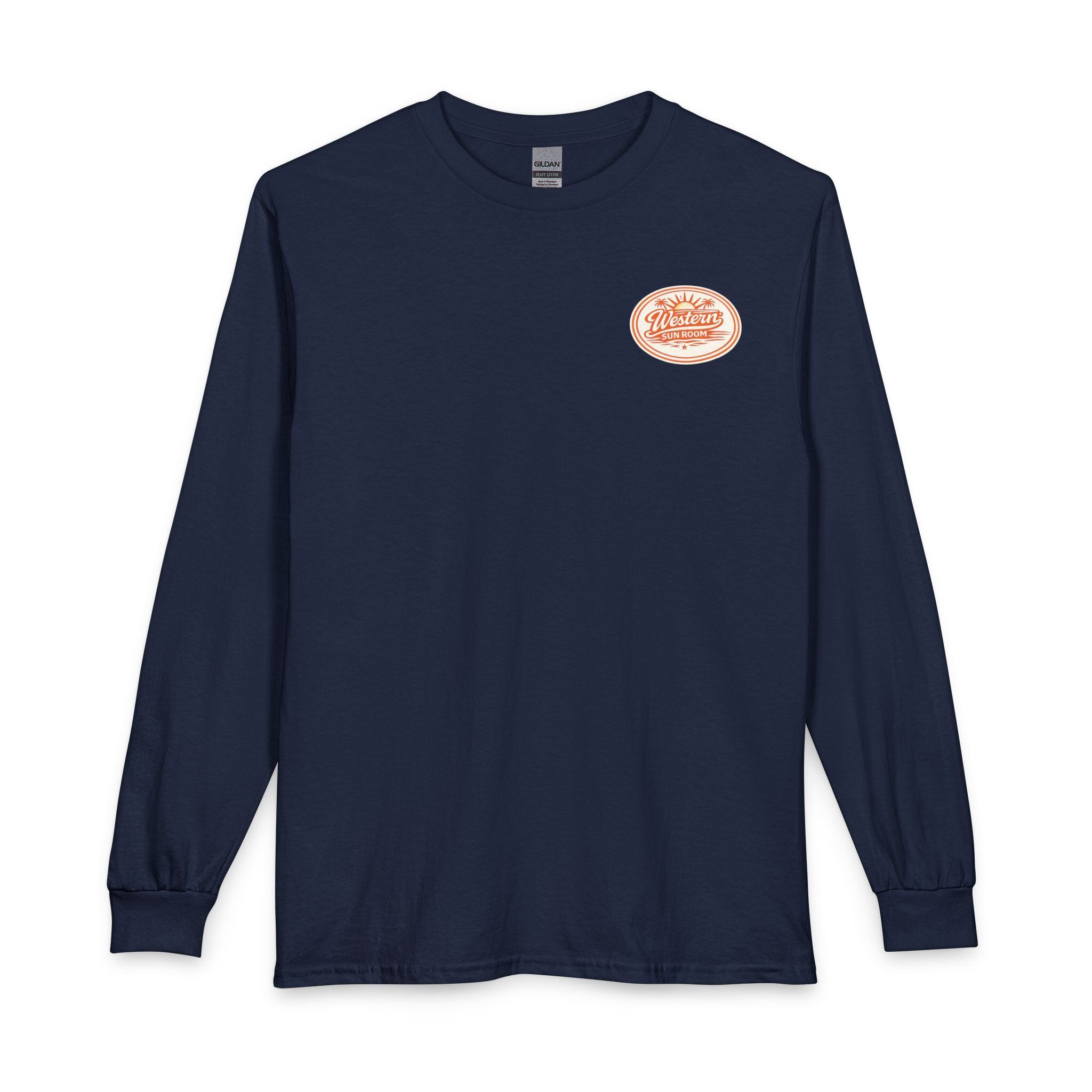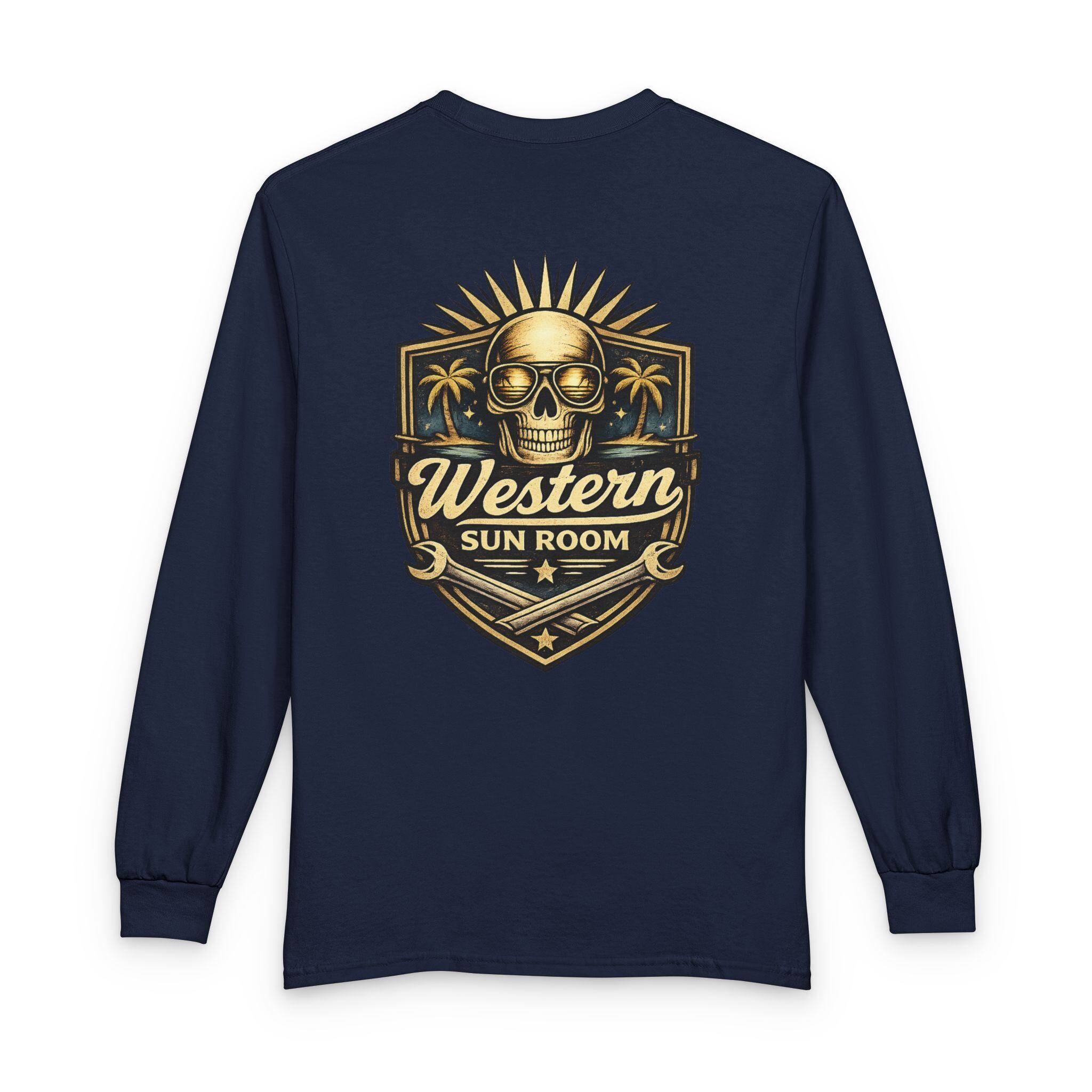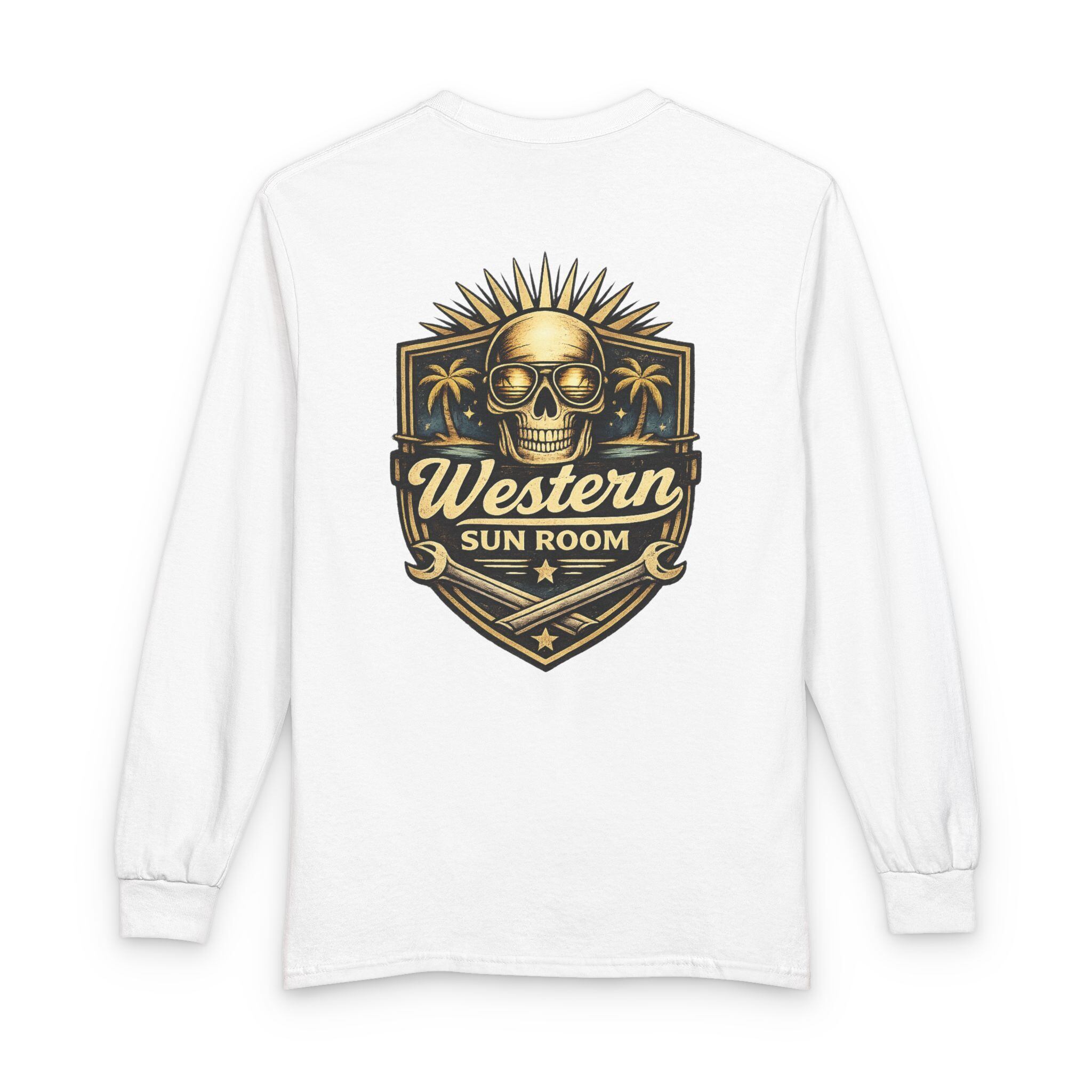 Western Sun Roomの世界観を象徴する、スカルエンブレムデザインのロングスリーブTシャツ。