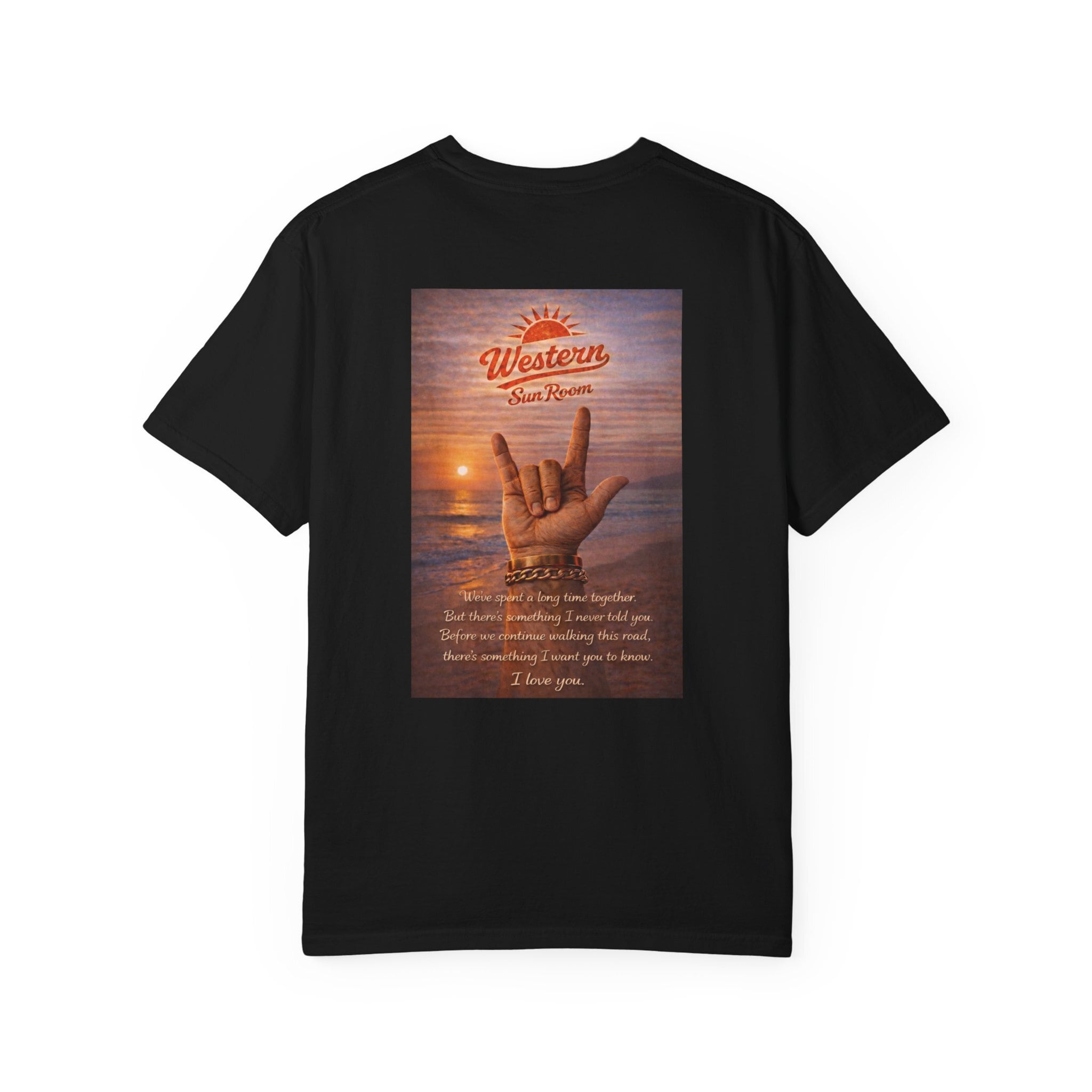 手で示す「ILY(I Love You)」のハンドサインを大胆にバックプリント。