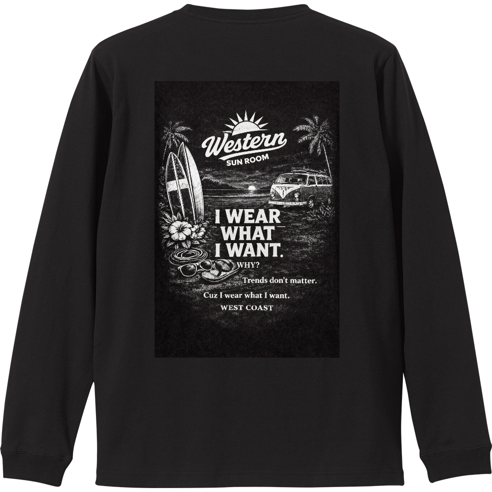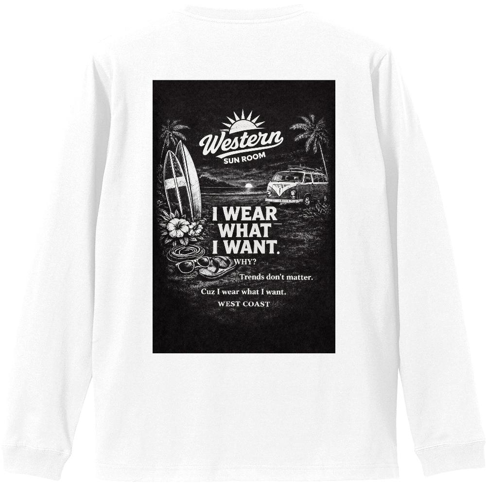 Western Sun Roomオリジナルグラフィックを背中に大胆にプリントしたロングスリーブTシャツ。