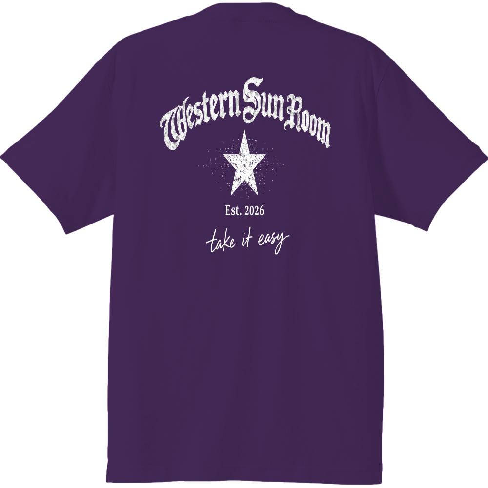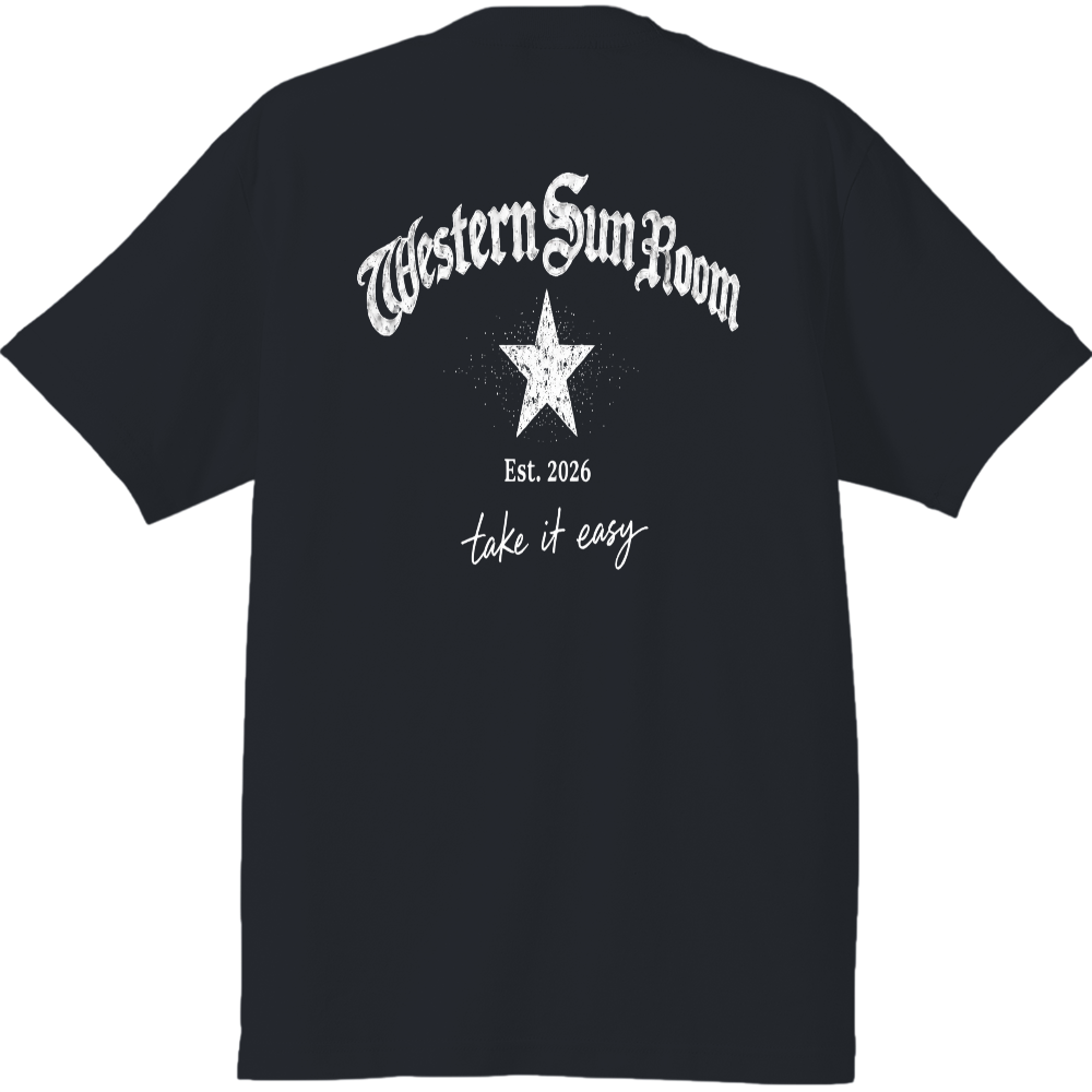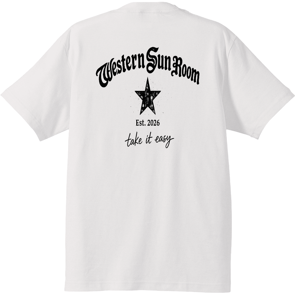 背面には「Western Sun Room」のアーチロゴとヴィンテージ加工されたスター、